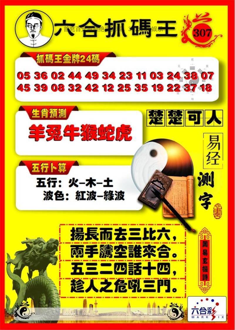 | 307期:七肖 | 虎龙猪鸡蛇狗猴 | 开:狗20中 |